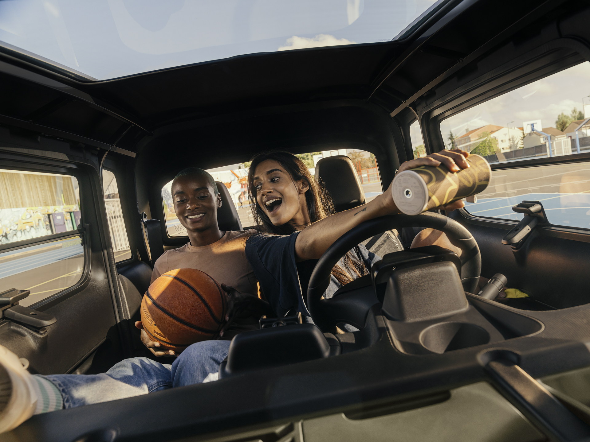 视觉效果被 – 主要是装修性的 – 车顶纵梁和五孔车轮上的卡其色装修所包裹。规范设备包含一个智能手机夹,以及很多的储物箱、网和挂钩。作为雪铁龙供给的个性化选项的一部分,My Ami 现已能够运用上述大多数配件。